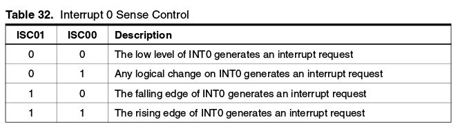 Младшие четыре бита указывают на режимы срабатывания прерывания. Для INT0 это будет: